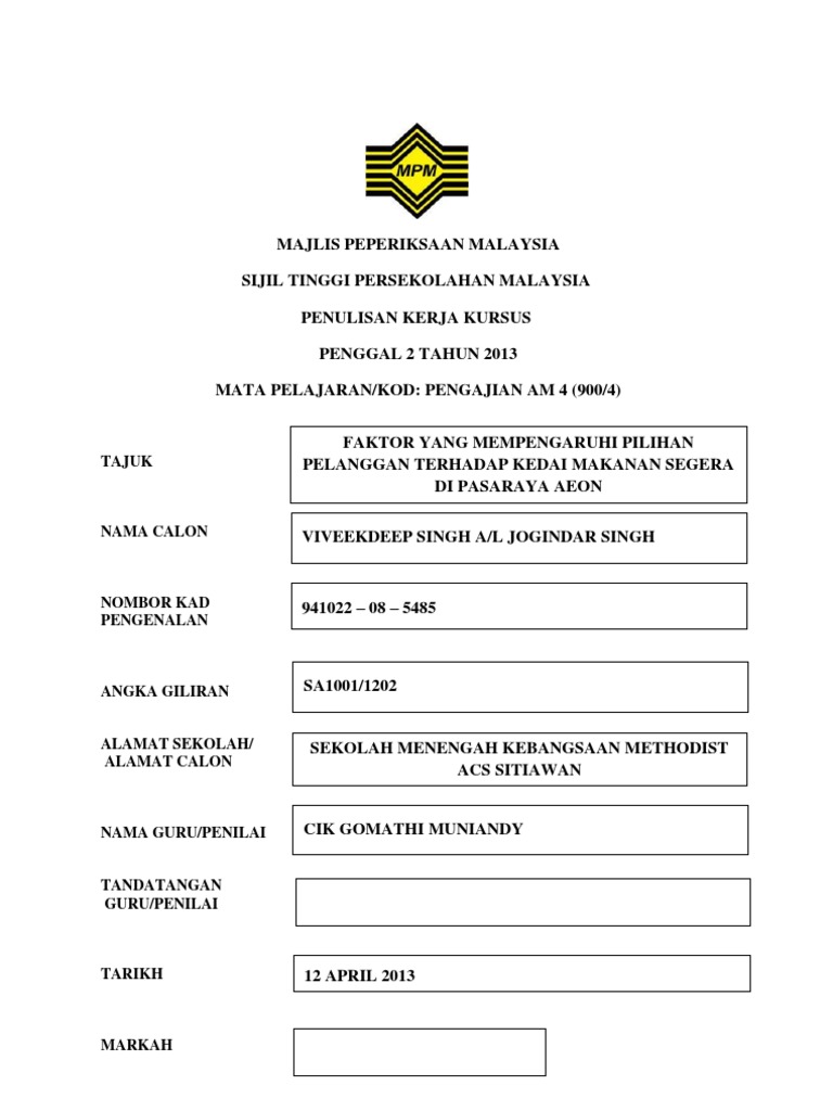 36 Memuat turun Manual Kerja Kursus Pengajian Am dari portal MPM. Download Manual Bagi anda yang terlibat dengan Kerja Kursus Pengajian AM sama ada guru mahupun calon berikut ialah manual pengguna yang boleh anda ikuti sebagai. Baca versi flipbook dari Contoh Kerja Kursus Pengajian Am.